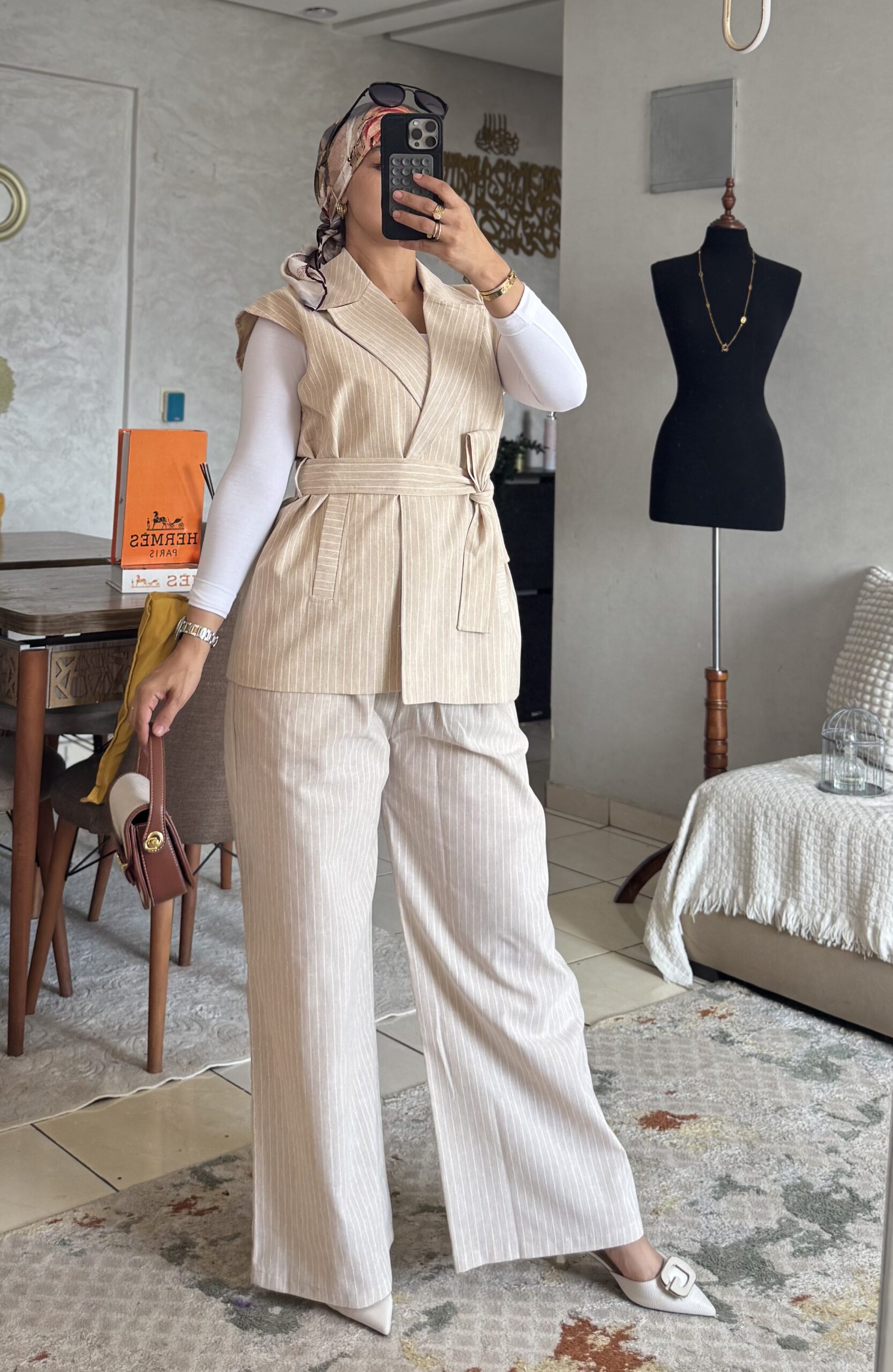 أونسومبل عصري وخفيف من ثوب لولان الطبيعي، خدام بطريقة عصرية باش يعطيك راحة فالحركة وأناقة بلا تكلف. مناسب للنساء اللي كيبغيو لبسة محتشمة، بسيطة وكلاسيك.